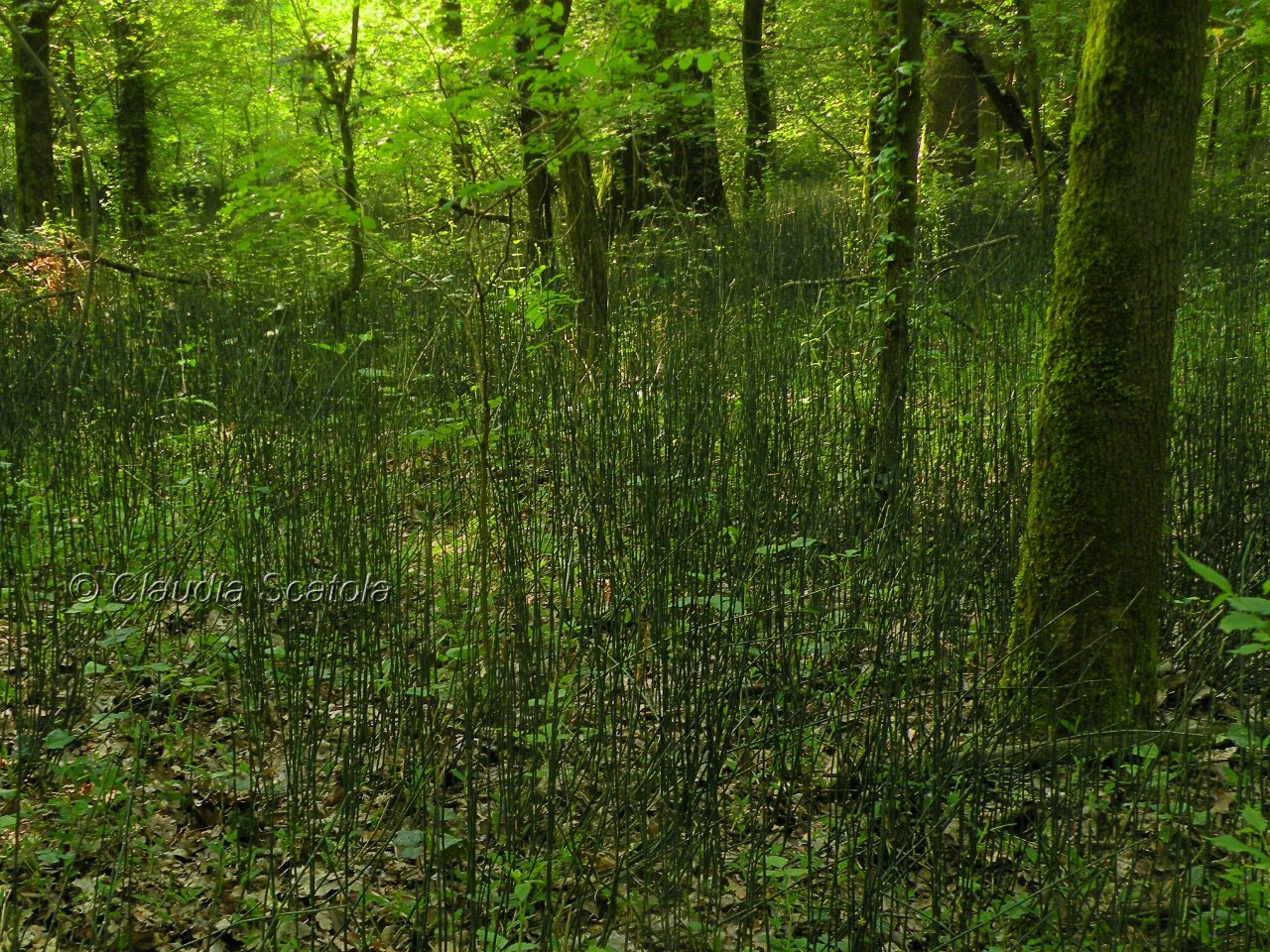 Sottobosco particolarmente ricco di equiseto (Equisetum hyemale). La presenza di questa specie igrofila è condizionata dalla profondità della falda freatica. Il genere Equisetum è il più antico genere di piante sopravvissuto sulla Terra presentando i caratteri essenziali simili al genere Equisetites, una pianta che comparve nel Carbonifero circa 300 milioni di anni fa.