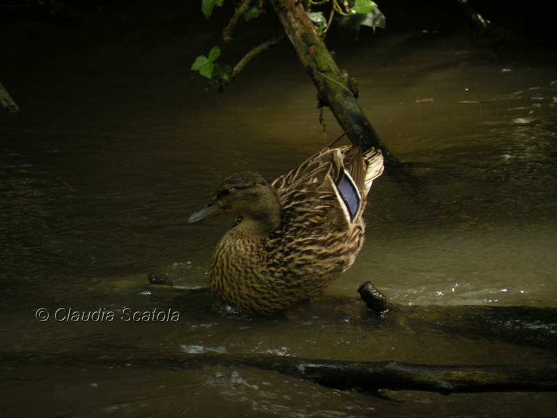 Femmina di germano reale (Anas platyrhynchos) - Visibile in fotografia lo specchio alare blu metallico